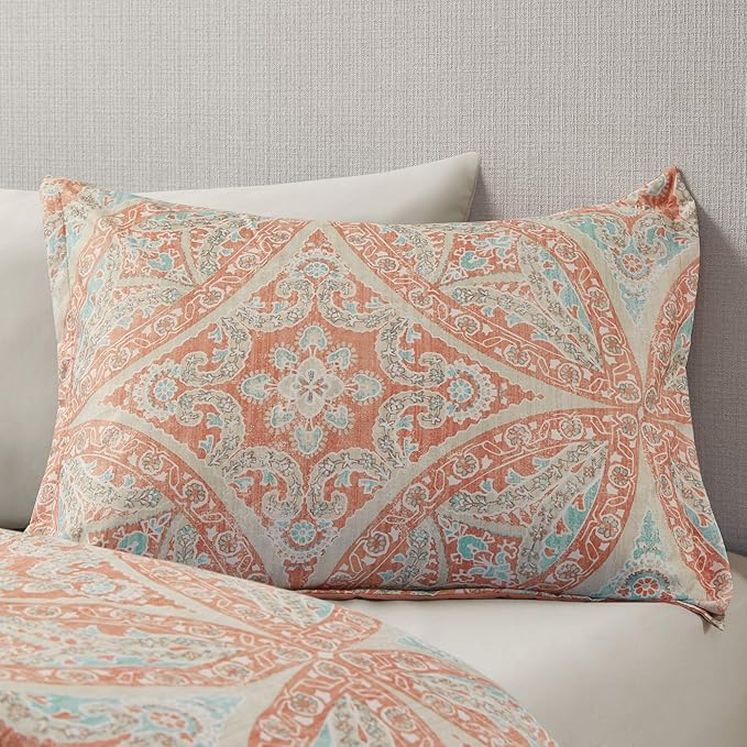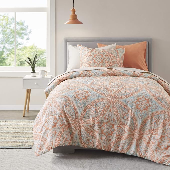 Comfort Spaces Bed in A Bag - Trendy Casual Design Cozy Comforter with Complete Sheet Set with Side Pocket, All Season Cover, Matching Shams, Twin XL(66 in x 90 in), Gloria, Damask Coral 6 Piece