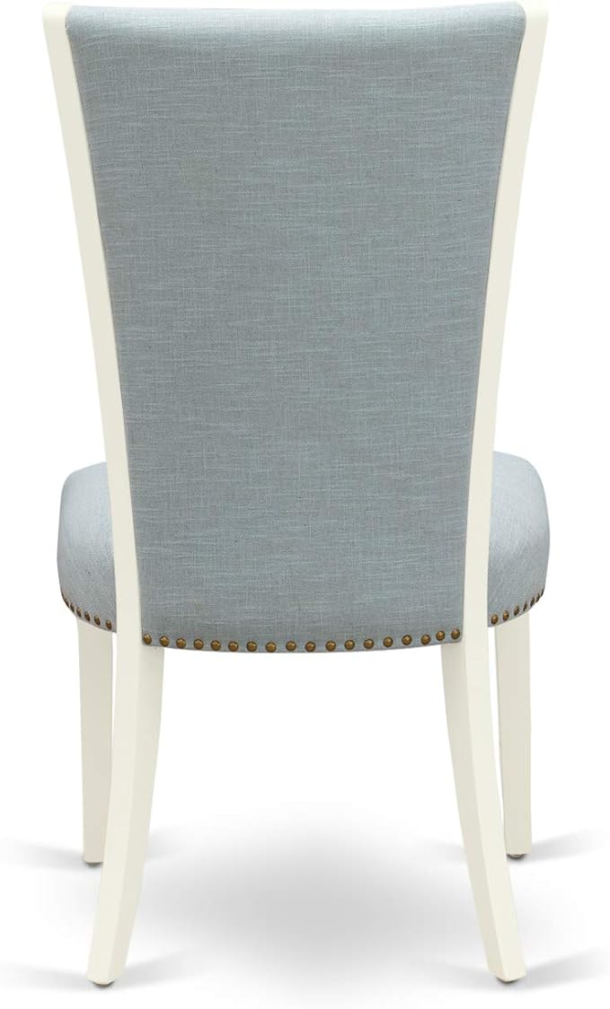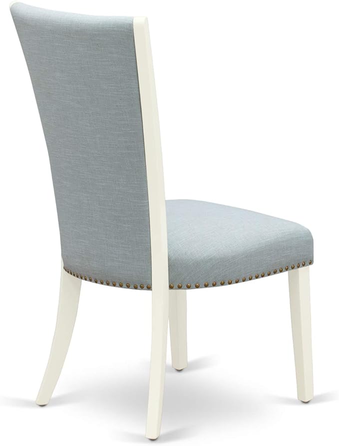 East West Furniture Norfolk 5 Piece Set Includes a Rectangle Dining Room Table with Butterfly Leaf and 4 Baby Blue Linen Fabric Parsons Chairs, 32x54 Inch, NFVE5-WHI-15