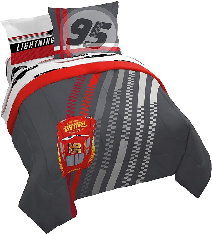 Jay Franco Disney Pixar Cars Race Ready 7 Piece Queen Bed Set - includes Comforter & Sheet Set - Bedding Features Lightning McQueen - Super Soft Fade Resistant Microfiber