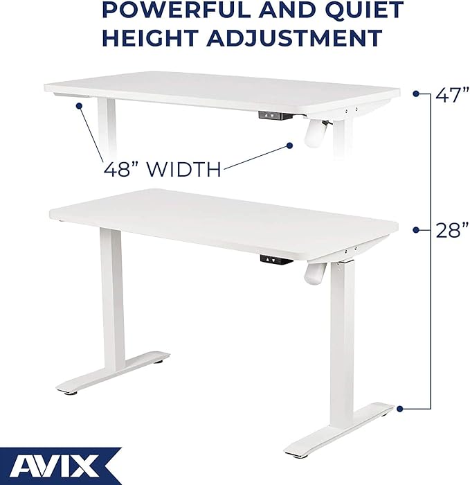 About This 【EASY ADJUSTABLE HEIGHTS】AVIX Electric Standing Desk quickly adjusts to any height between 28” and 47”, quick and quiet...