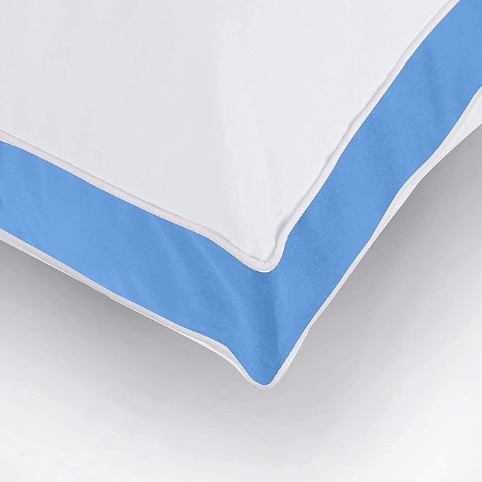 About This Polycotton GUSSET PILLOW PACK - Pack of 6 white pillows with a blue piping and double stitching gives...