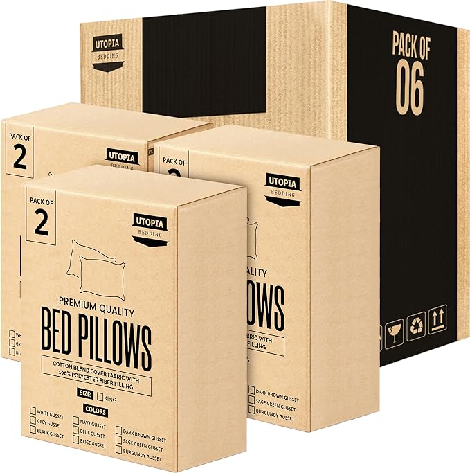 Utopia Bedding Bed Pillows for Sleeping King Size (Blue), Set of 6, Cooling Hotel Quality, Gusseted Pillow for Back, Stomach or Side Sleepers