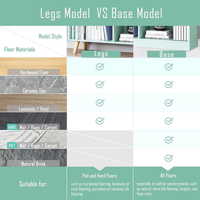 IOTXY Wooden Open Shelf Bookcase - 3-Tier Floor Standing Display Cabinet Rack with Legs, 7 Cubes Bookshelf, Tiffany-Green