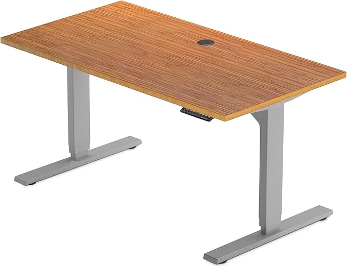 Standing desk bamboo, dual motor stand up desk adjustable height electric 48x30 - Bamboo Dark Gloss, Grey Frame