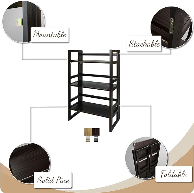 Casual Home 3-Shelf Folding Student Bookcase 20.75" Wide-Espresso