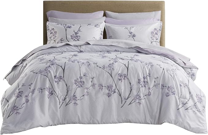 Comfort Spaces Bed in A Bag - Trendy Casual Design Cozy Comforter with Complete Sheet Set with Side Pocket, All Season Cover, Matching Shams King(104"x90"), Kate, Grey/Purple 9 Piece