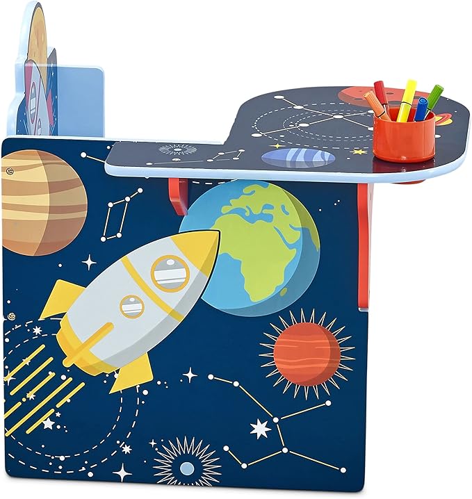 Delta Children Space Adventures Chair Desk with Storage Bin - Ideal for Arts & Crafts, Snack Time, Homeschooling, Homework & More - Greenguard Gold Certified, Blue