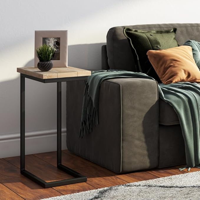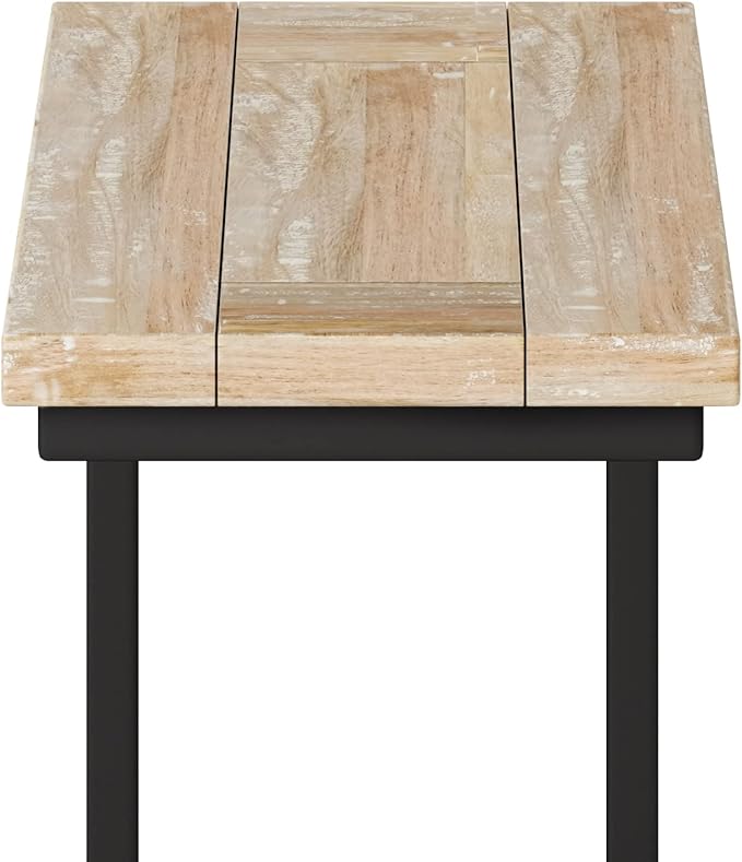 SIMPLIHOME Skyler SOLID MANGO WOOD and Metal 18 Inch Wide Rectangle C Side Table in Distressed White Wash, Fully Assembled, For the Living Room and Bedroom