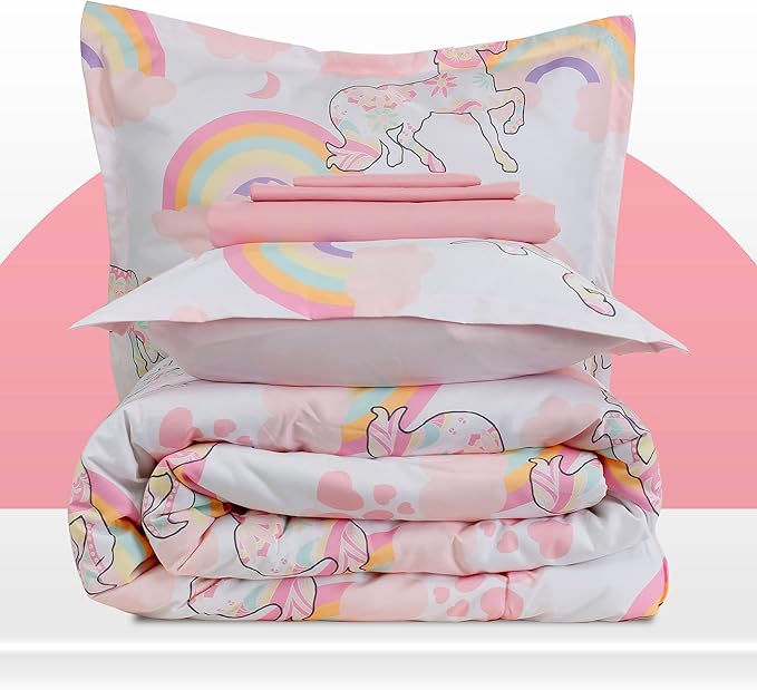 SLEEP ZONE Kids Twin Bedding Comforter Set - Super Cute & Soft Kids Bedding 5 Pieces Set with Comforter, Sheet, Pillowcase & Sham (Pink Unicorn)