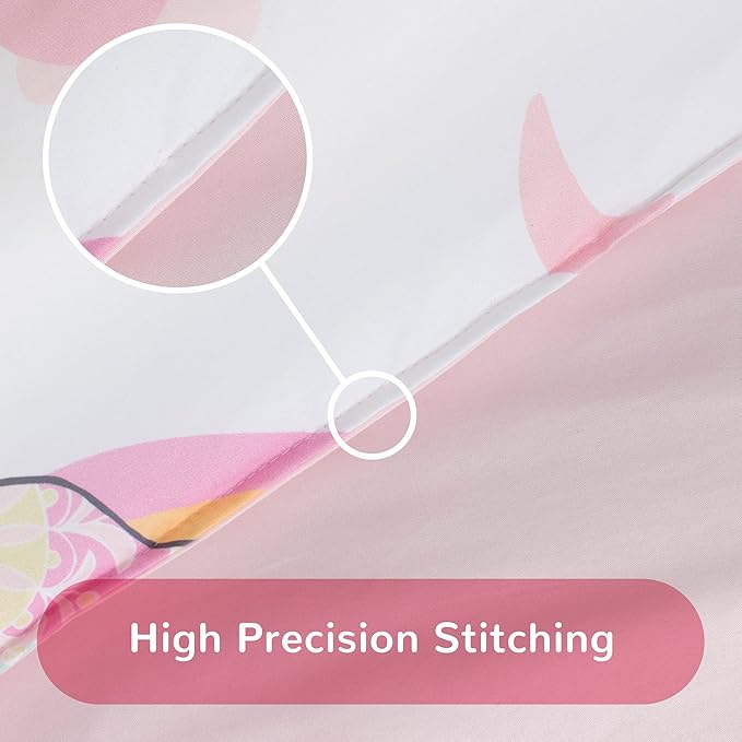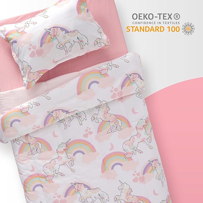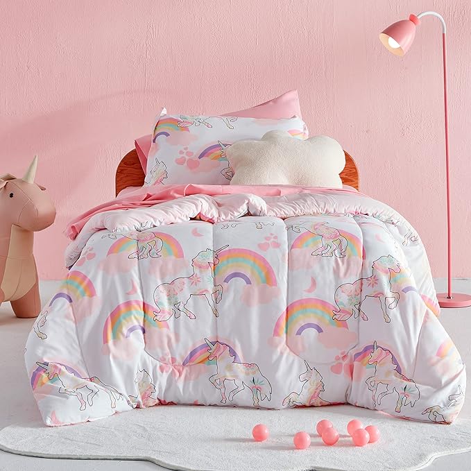 About This CUTE DESIGN FOR KIDS - The comforter's front side is designed with rainbow, moon, cloud, unicorn, heart together...