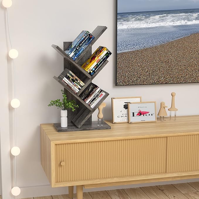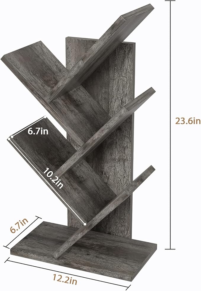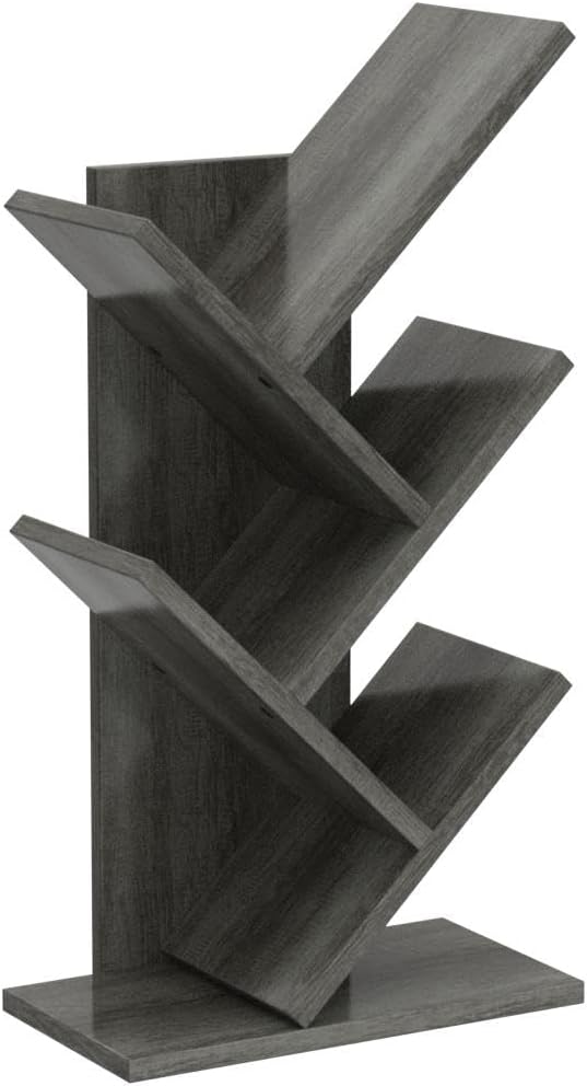Topfurny Tree Bookshelf, 4-Tier Book Storage Organizer Shelves Floor Standing Bookcase, Wood Storage Rack for Office Home School Shelf Display for Cd/Magazine/Book -Black Oak