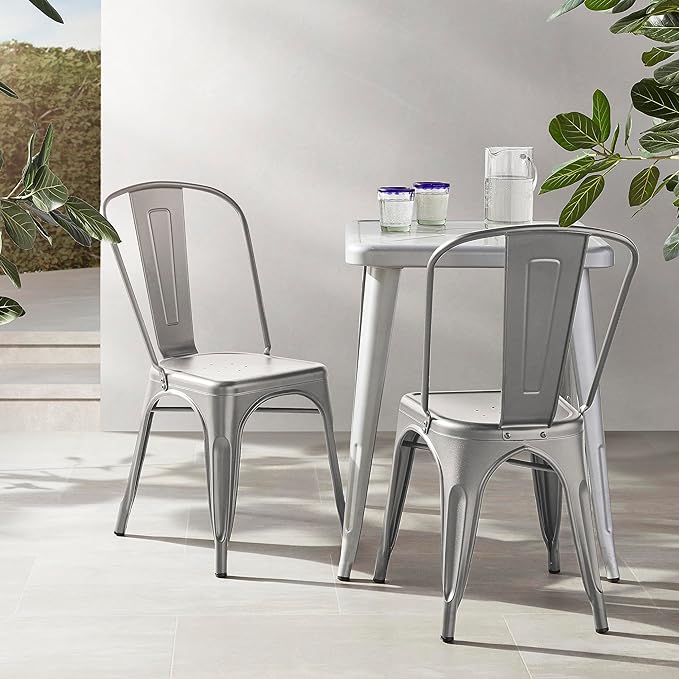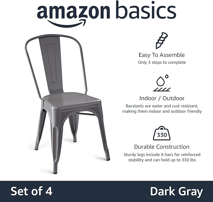 Amazon Basics Metal Dining Chairs, Dark Grey, 1 Count (Pack of 4)