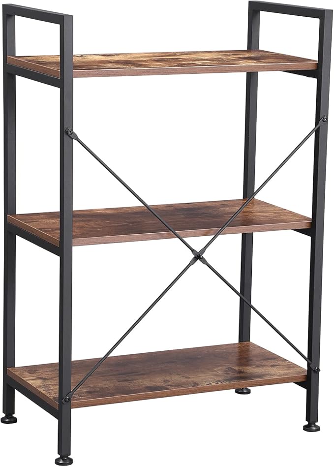 BEWISHOME 3 Tier Bookshelf, Rustic Small Book Shelf for Small Spaces, Brown Wooden Shelves for Bedroom Living Room and Home Office, 13.58" D x 24.21" W x 37" H, JCJ32Z