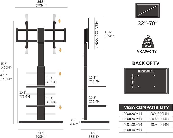 About This 【VERSATILE TV FLOOR STAND】A corner TV stand lets TV fit a big display in a compact space. Unlike...