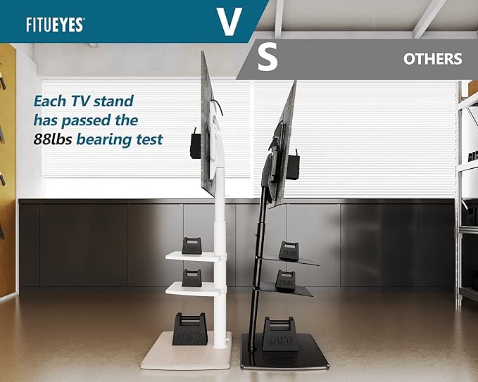 FITUEYES TV Stand for 32 39 40 43 49 50 55 60 65 70 Inch TVs Tall Floor TV Stands with Sturdy Wood Base Universal Corner Stand for Flat Panel Screen TVs Height Adjustable Shelves White…