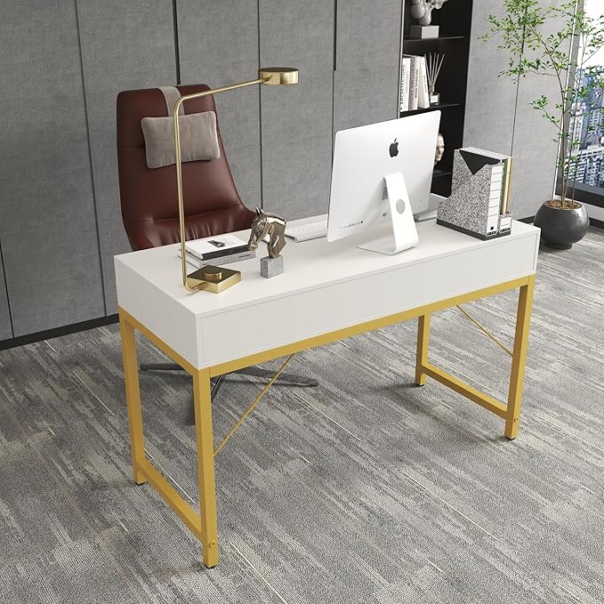 WESTREE Women Makeup Vanity Desk with 2 Drawers - Bedroom Home Office Desk, Wooden Height Monitor Stand & Storage Shelf without Mirror, White Table Great Gift for Her