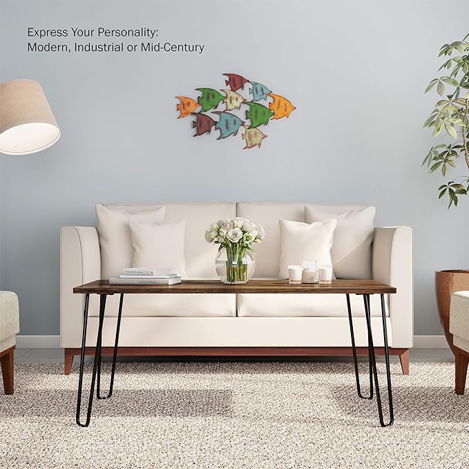 Lavish Home Coffee Table with Hairpin Legs-Modern Industrial Style Home Decor-Woodgrain-Look and Steel Accent Living Room Furniture, 41", Brown