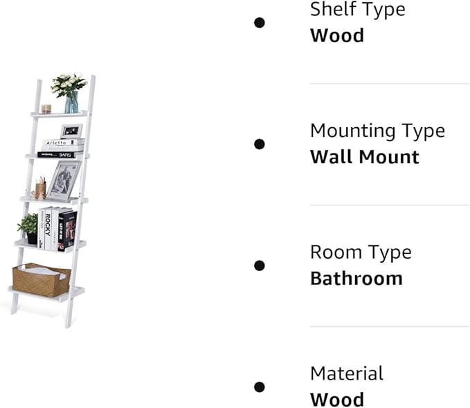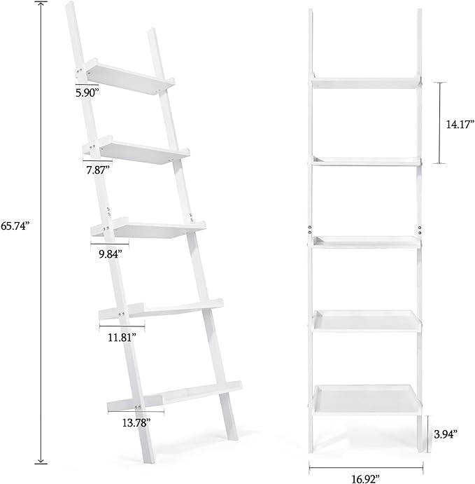 HYNAWIN Ladder Shelf 5-Tier Bookshelf –Bamboo Storage Rack Shelves Wall Leaning Shelf,White Freestanding Plant Flower Stand, Corner Display Bookcase