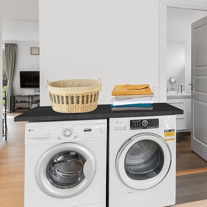 Kaboon Universal Tabletop 55"x27.5", Solid One-Piece Melamine Table Top, Double Desk L-Desk DIY, Home and Office Countertop, Cloud Atlas/Black Marble