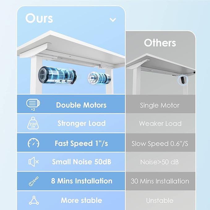 About This SMOOTH DUAL MOTOR: The height adjustable standing desk with smoother quieter movement,dual motor for synchronized and precise compensation...
