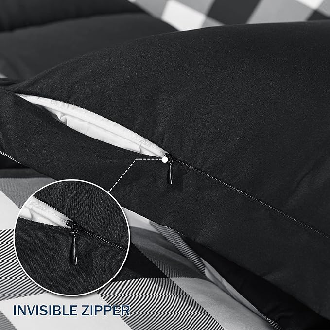 downluxe Lightweight Plaid Comforter Set (King) with 2 Pillow Shams - 3-Piece Set - Black/White Plaid - Down Alternative Reversible Comforter