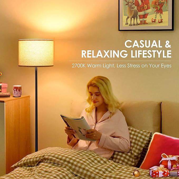 BoostArea Floor Lamps for Living Room Bedroom, 9W Modern Standing Lamp with 3 Color Temperature, Simple Floor Lamp, Beige Linen Shade, On/Off Foot Switch, Tall Pole Lamp for Office, Classroom, Den