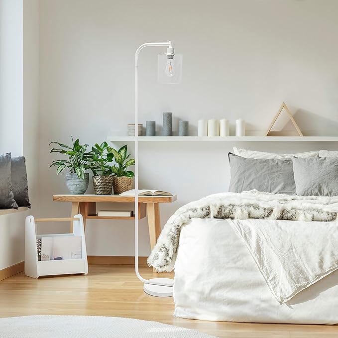 Simple Designs LF1036-WHT Antique Style Industrial Iron Lantern Glass Shade Floor Lamp, White 12 x 10 x 63