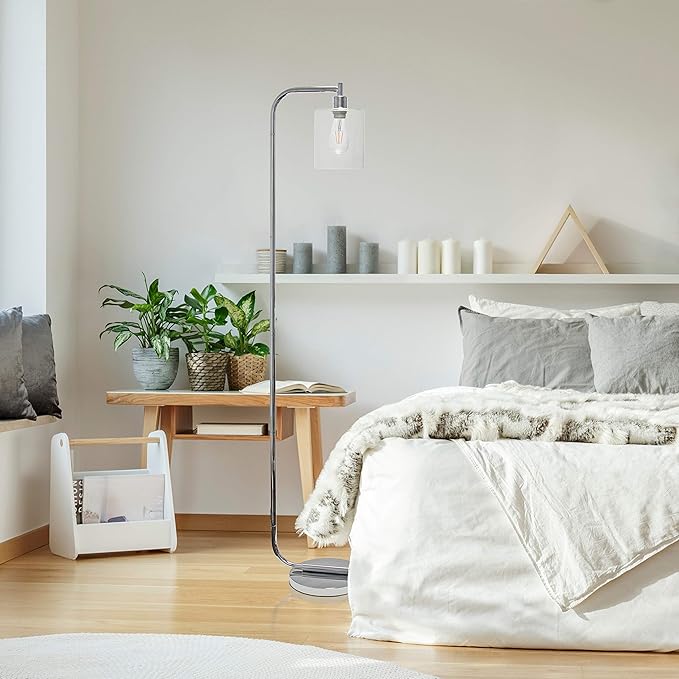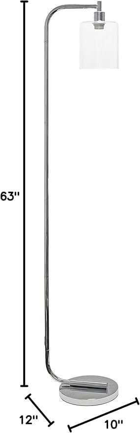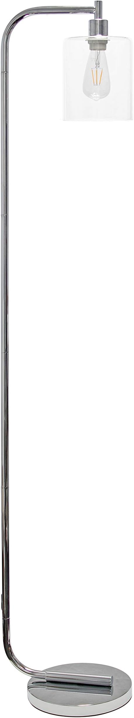 Simple Designs LF1036-CHR Antique Style Industrial Iron Lantern Floor Lamp with Glass Shade, Chrome
