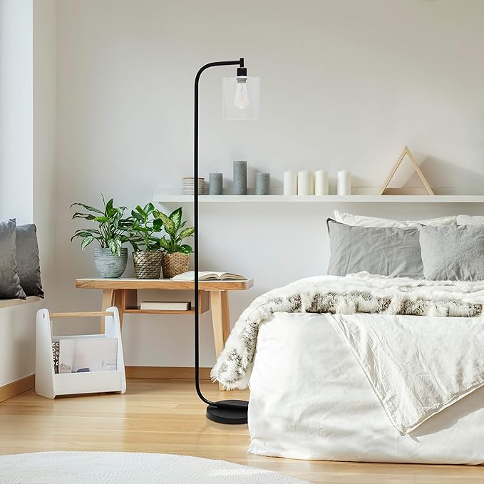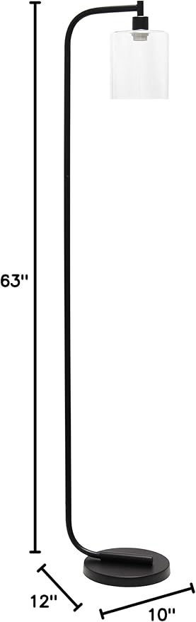 Simple Designs LF1036-BLK Antique Style Industrial Iron Lantern Floor Lamp with Glass Shade, Black 12 x 10 x 63