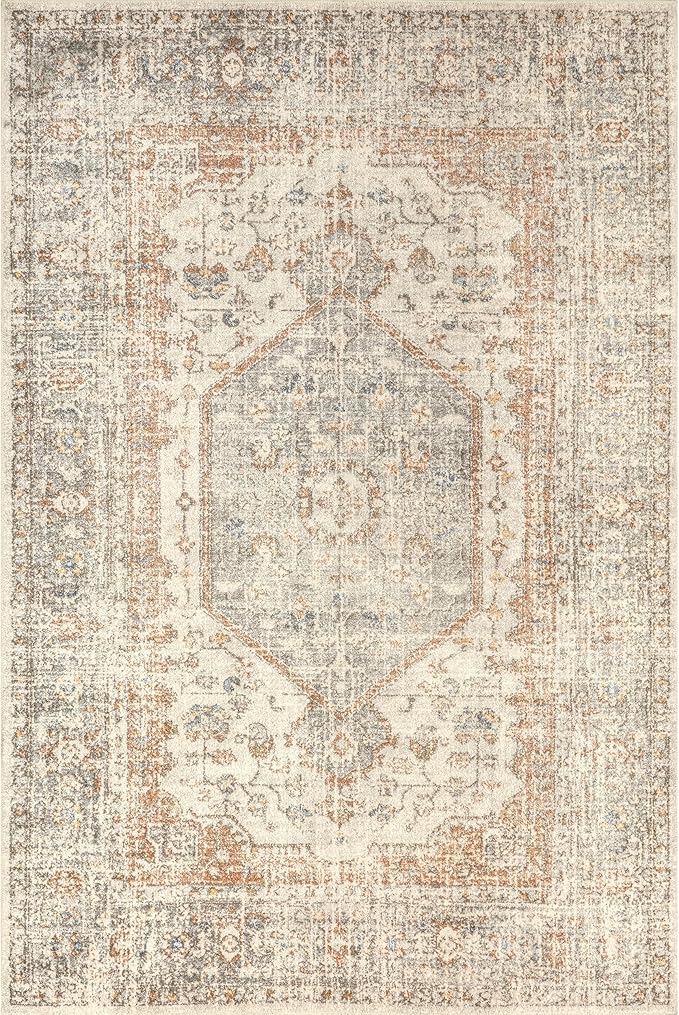 nuLOOM 4x6 Machine Washable Rain Haven Vintage Medallion Area Rug, Light Grey, Traditional Faded Design, Non-Slip Backing, Stain Resistant, For Bedroom, Dining Room, Living Room, Kitchen