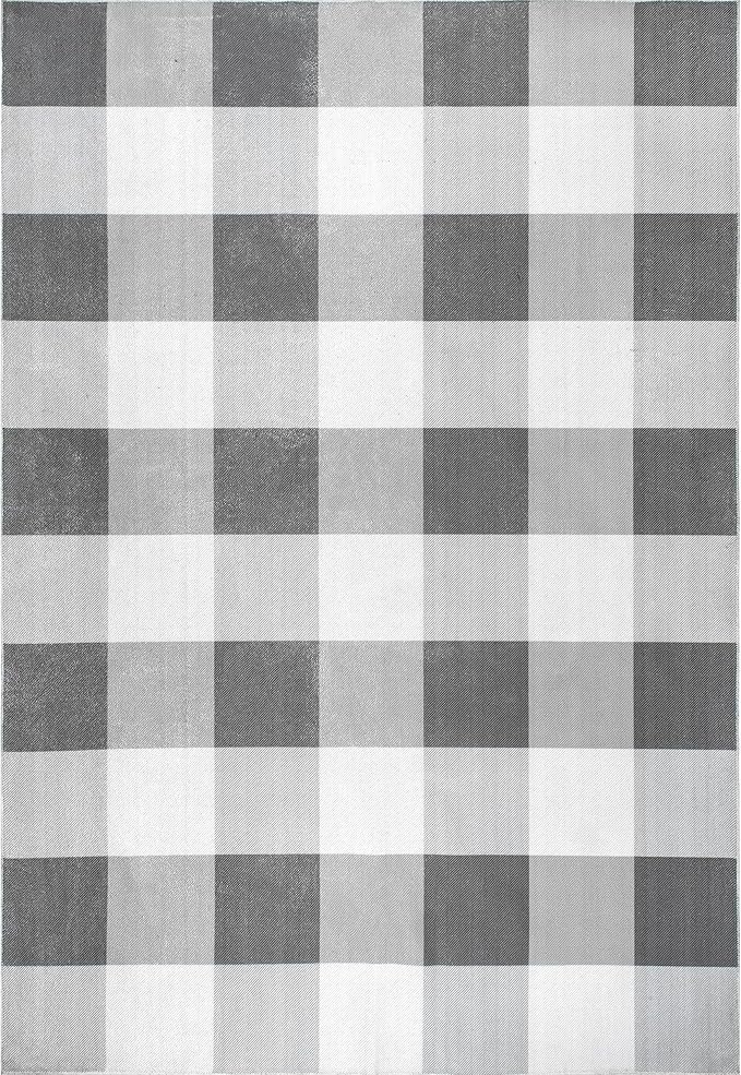 nuLOOM Lucy Machine Washable Farmhouse Buffalo Plaid Ultra Thin Area Rug, 4' x 6', Grey