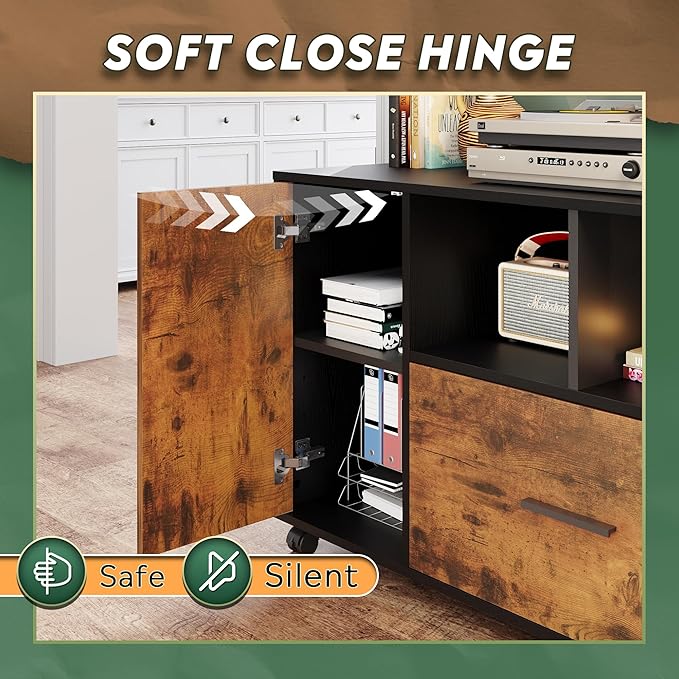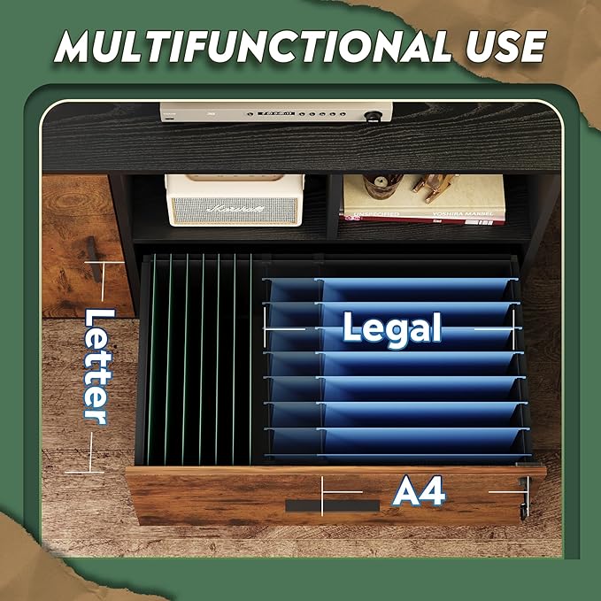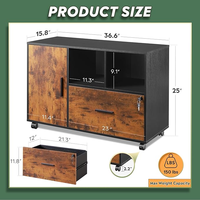 About This Multi-functional Storage: The wide filing cabinet with shelf spaces and large storage drawer fulfill different organization needs. The...