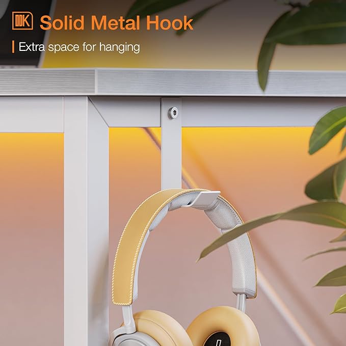 ODK Computer Desk Large Office Desk, 55 Inch Gaming Desk with Storage, Modern PC Desk Work Table with Headphone Hook for Home Office, White + White Leg
