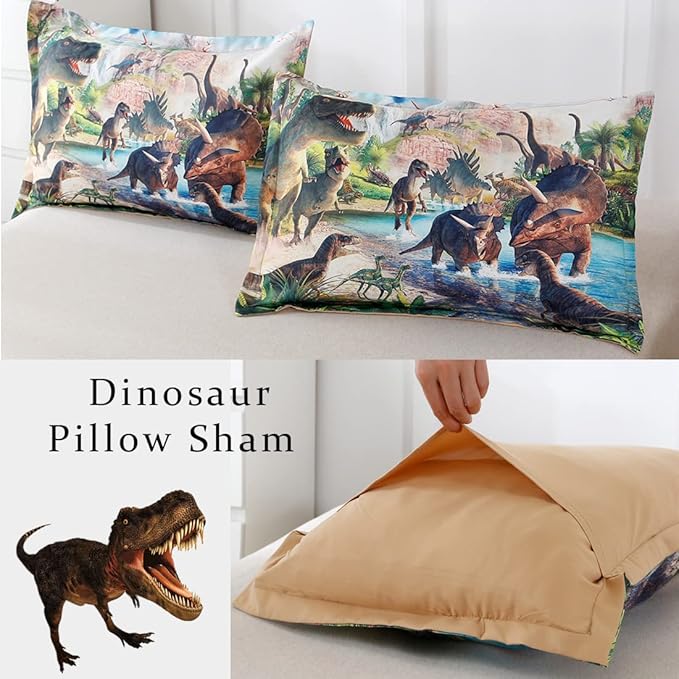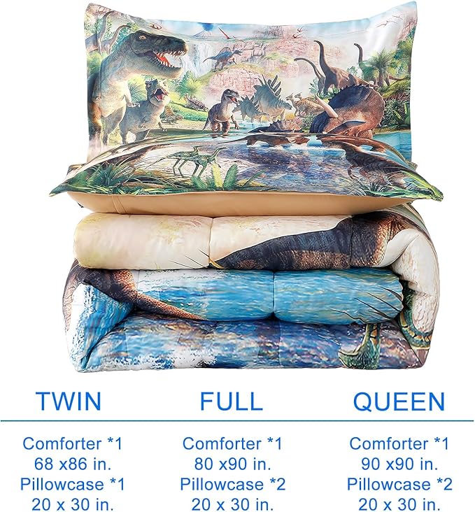 WINLIFE Dinosaur Comforter Set Queen Kids Dinosaur Bedding Set Jurassic Jungle Dino Comforter Sets for Boys Teens, Lightweight Easy Care Bed Linen Set (3 Pieces, Queen)