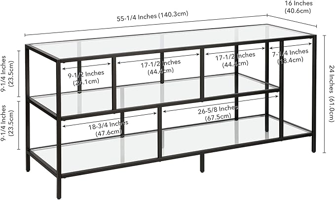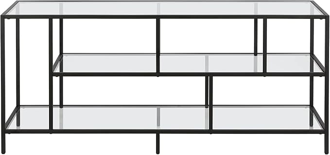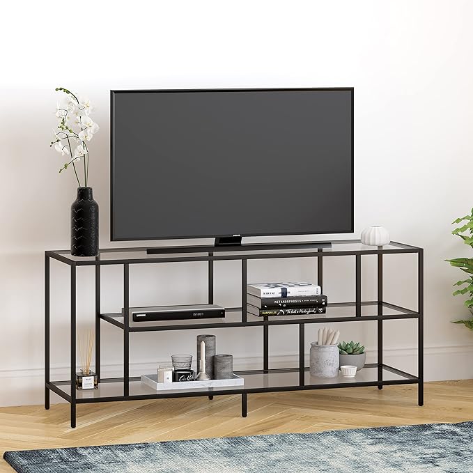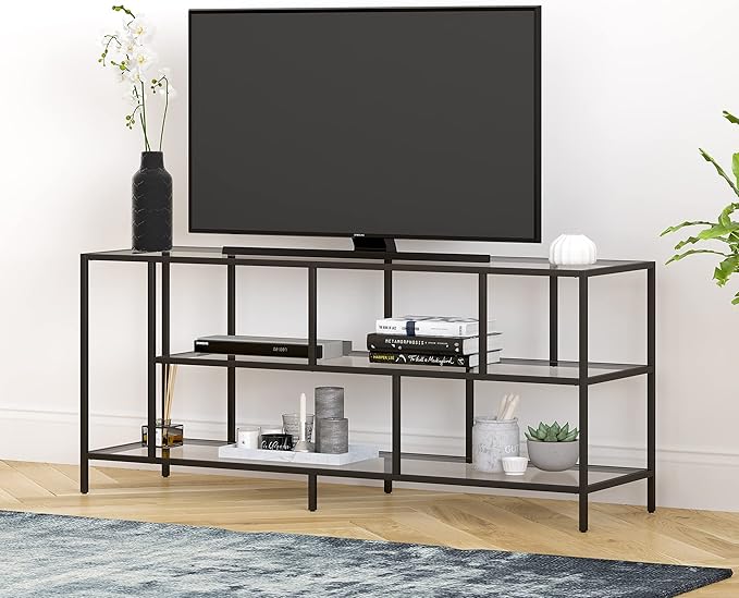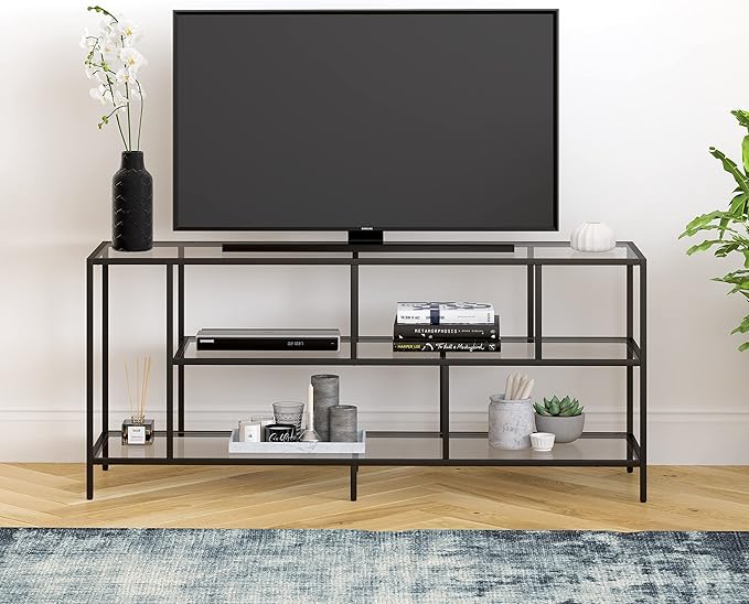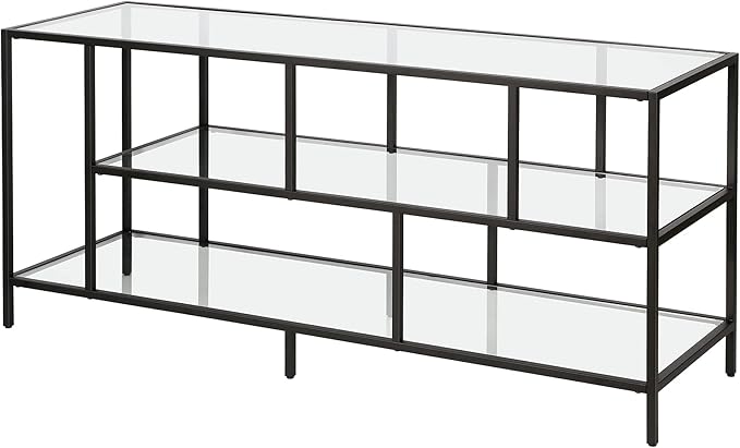 Henn&Hart Rectangular TV Stand with Glass Shelves for TV's up to 60" in Blackened Bronze, TV Stands for the Living Room