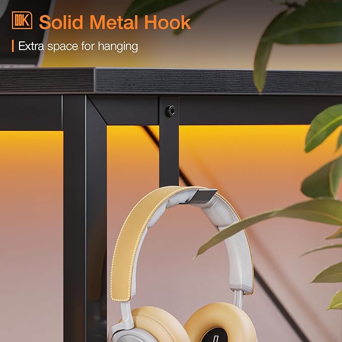 ODK Computer Desk Large Office Desk, 63 Inch Gaming Desk with Storage, Modern PC Desk Work Table with Headphone Hook for Home Office, Black