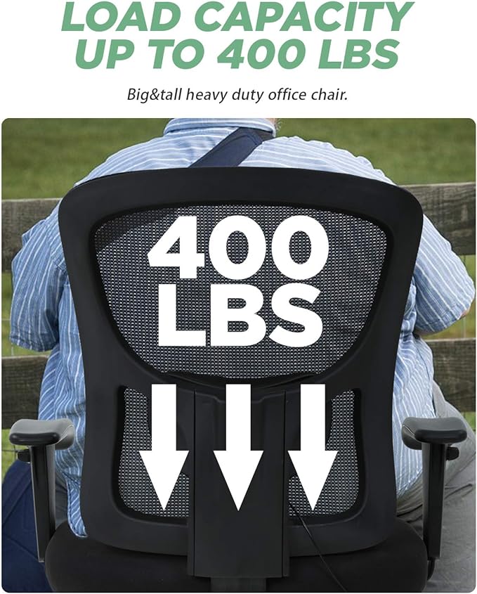 BestOffice Big and Tall Office Chair 500lbs Desk Chair Mesh Computer Chair with Lumbar Support Wide Seat High Back Task Executive Ergonomic Chair for Home Office (Black)