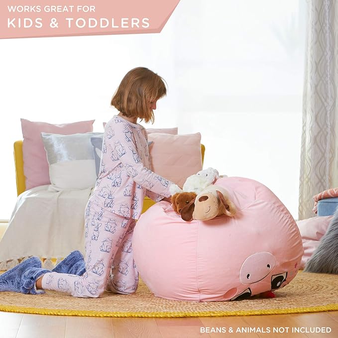 Aubliss Stuffed Animal Storage Bean Bag Chair Cover - Large Stuff 'n Sit Storage Organization for Kids - Toy Storage Bag - Chair Gifts for Girls (Large, Pink)