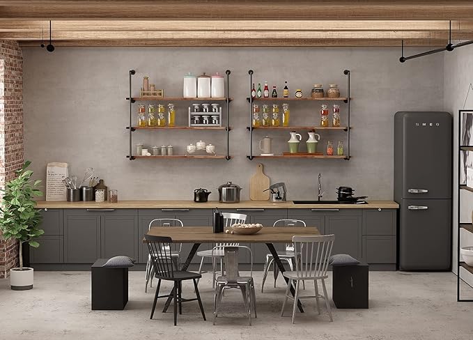 About This 【Sturdy Structure Floating Shelves】: The pipe shelves constructed with durable SOLID WOOD planks and sturdy IRON PIPES. The...