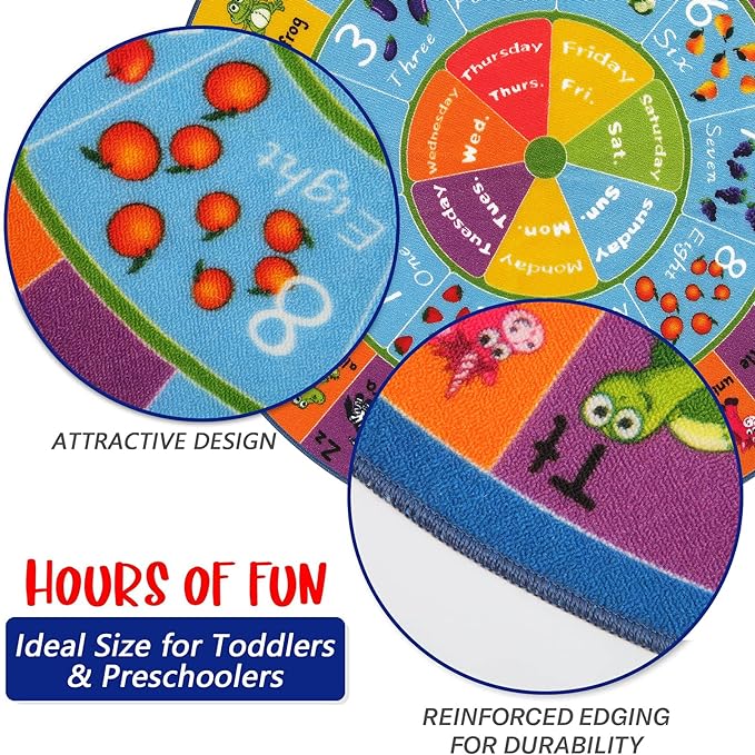 HEBE Kids Play Rug 4ft ABC Alphabet Numbers Shapes Educational Kid Area Rug Washable Baby Crawling Mat Non Slip Kid Play Mat Carpet for Girl Boy Bedroom Playroom