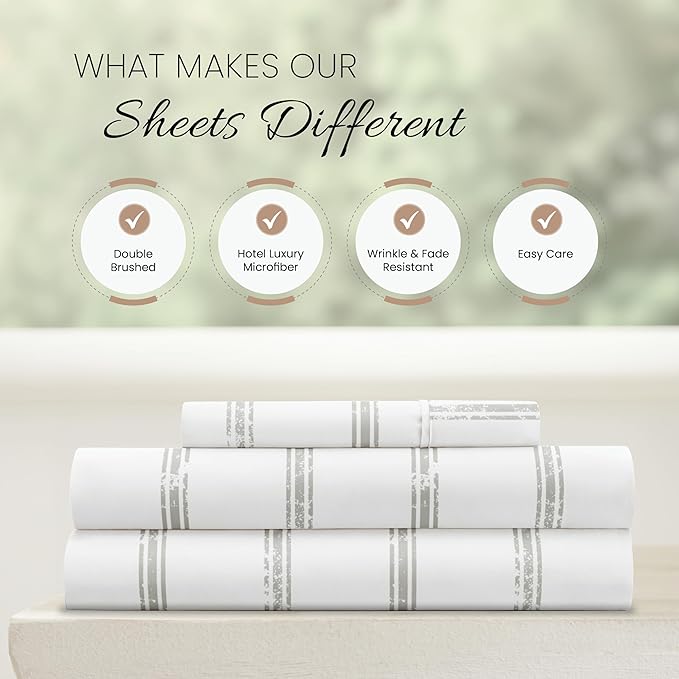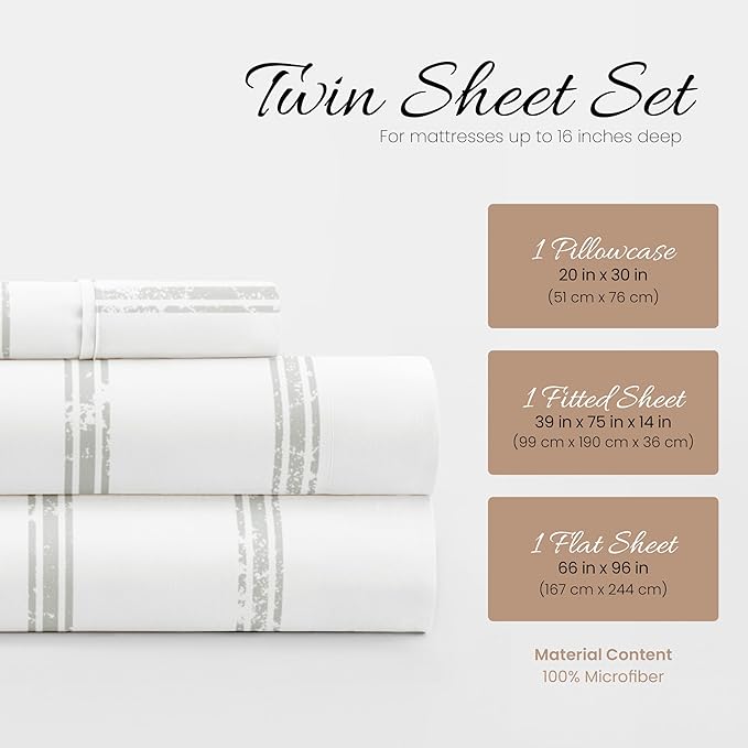 Linen Market 3 Piece Twin Bedding Sheet Set (Light Gray Lines) - Sleep Better Than Ever with These Ultra-Soft & Cooling Bed Sheets for Your Twin Size Bed - Deep Pocket Fits 16" Mattress