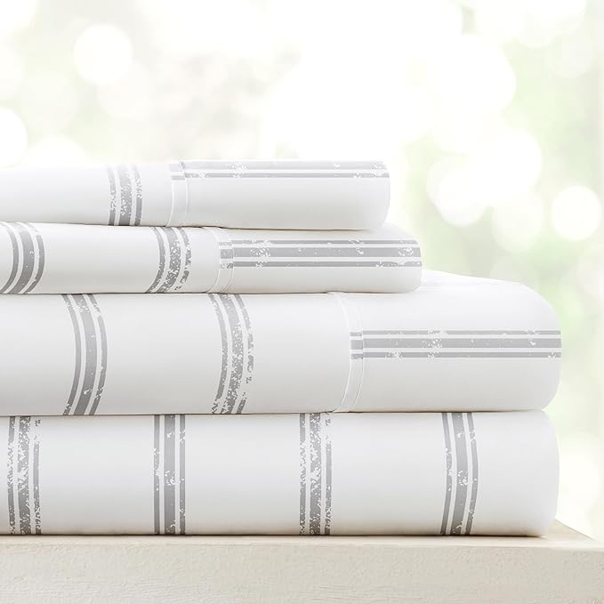 Linen Market 4 Piece King Bedding Sheet Set (Light Gray Lines) - Sleep Better Than Ever with These Ultra-Soft & Cooling Bed Sheets for Your King Size Bed - Deep Pocket Fits 16" Mattress