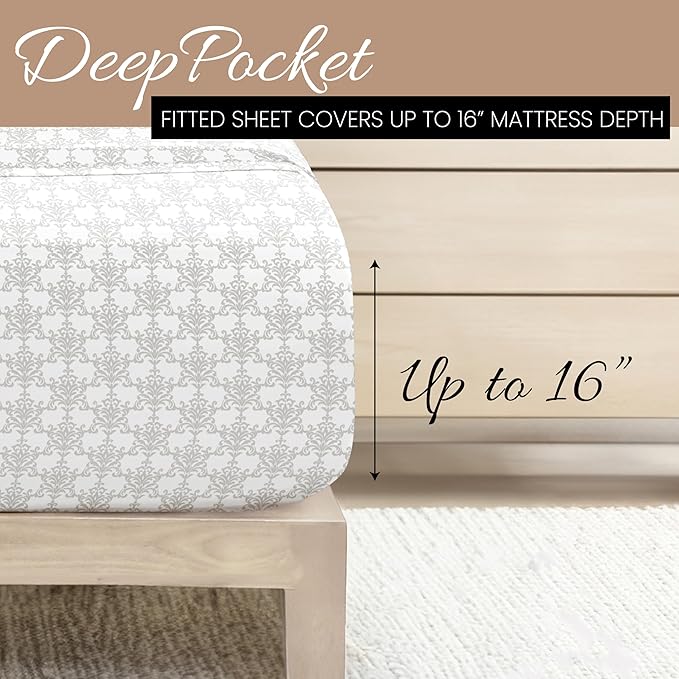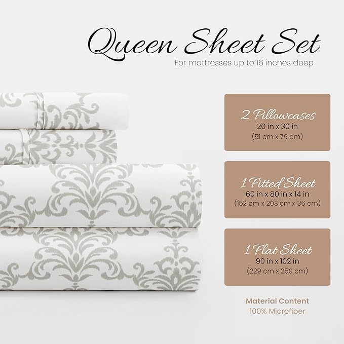 Linen Market 4 Piece Queen Bedding Sheet Set (Light Gray Floral) - Sleep Better Than Ever with These Ultra-Soft & Cooling Bed Sheets for Your Queen Size Bed - Deep Pocket Fits 16" Mattress