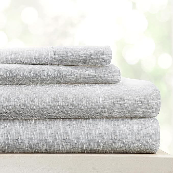 Linen Market 4 Piece King Bedding Sheet Set (Light Gray Chambray) - Sleep Better Than Ever with These Ultra-Soft & Cooling Bed Sheets for Your King Size Bed - Deep Pocket Fits 16" Mattress