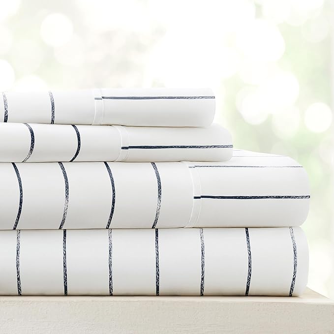 Linen Market 4 Piece Full Bedding Sheet Set (Navy Blue Stripes) - Sleep Better Than Ever with These Ultra-Soft & Cooling Bed Sheets for Your Full Size Bed - Deep Pocket Fits 16" Mattress