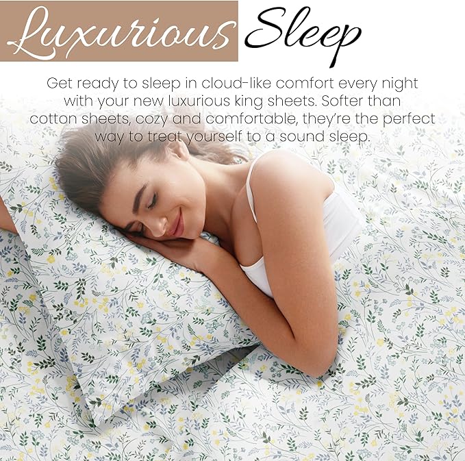 • LUXURIOUS SLEEP: Get ready to sleep in cloud-like comfort every night with your new luxurious king sheets. Softer than cotton sheets, cozy and comfortable, they're the perfect way to treat yourself to a sound sleep.