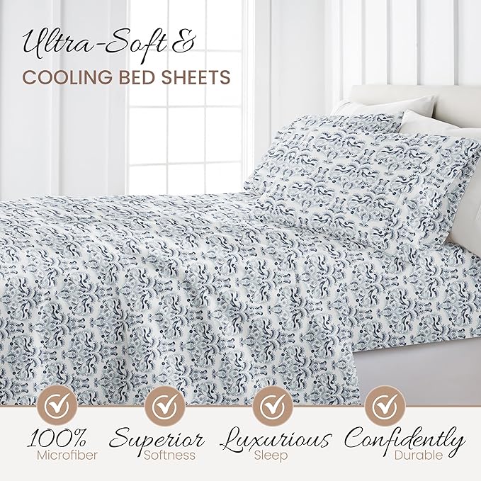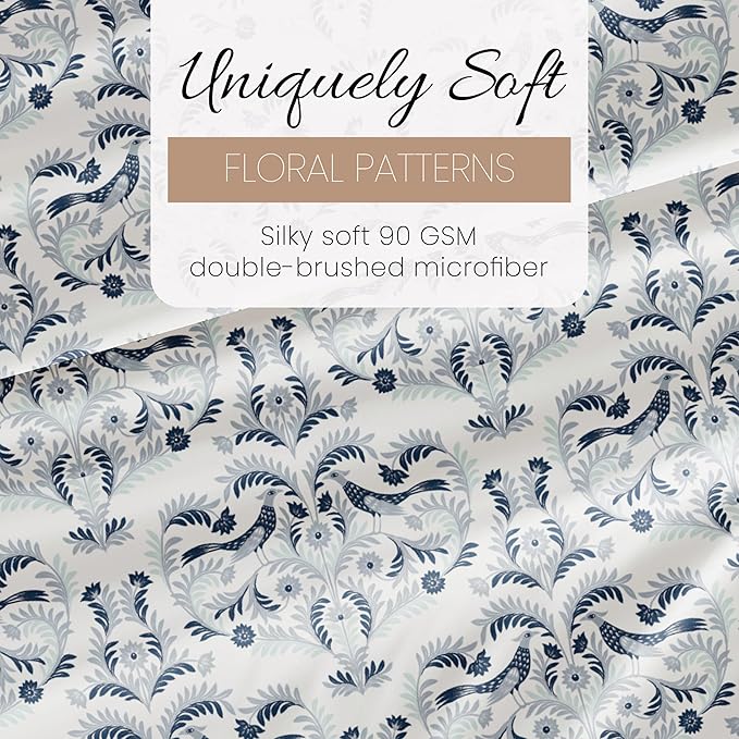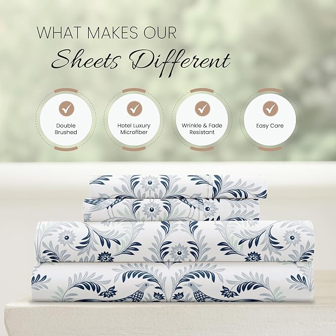 Linen Market 4 Piece Queen Bedding Sheet Set (Navy Blue Floral) - Sleep Better Than Ever with These Ultra-Soft & Cooling Bed Sheets for Your Queen Size Bed - Deep Pocket Fits 16" Mattress