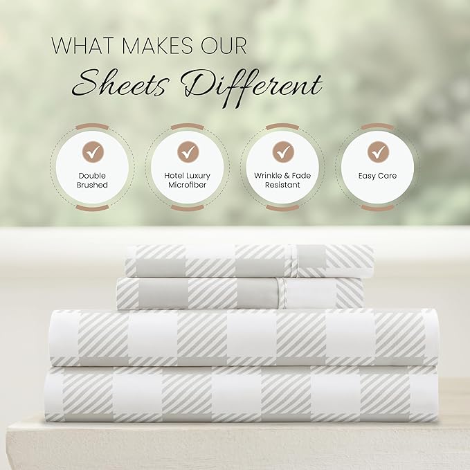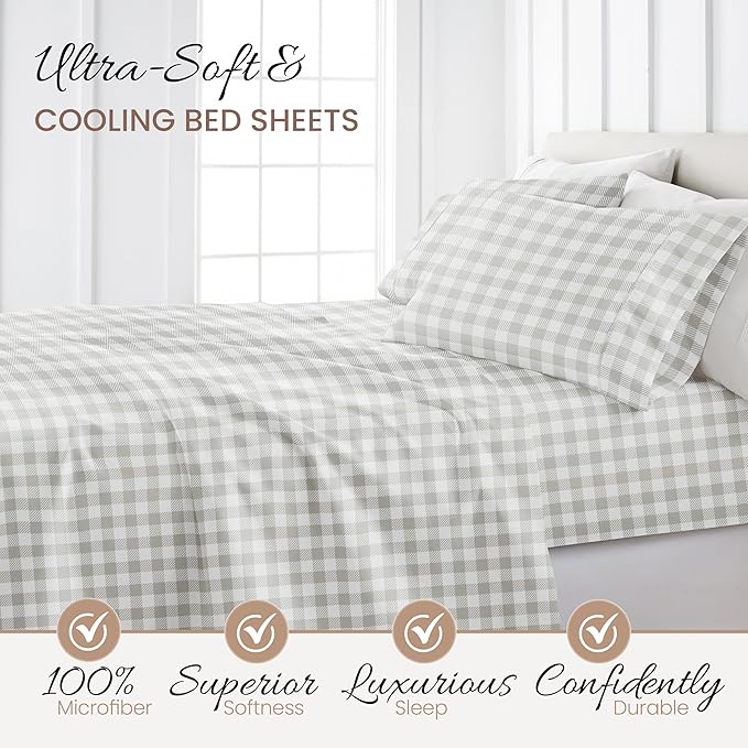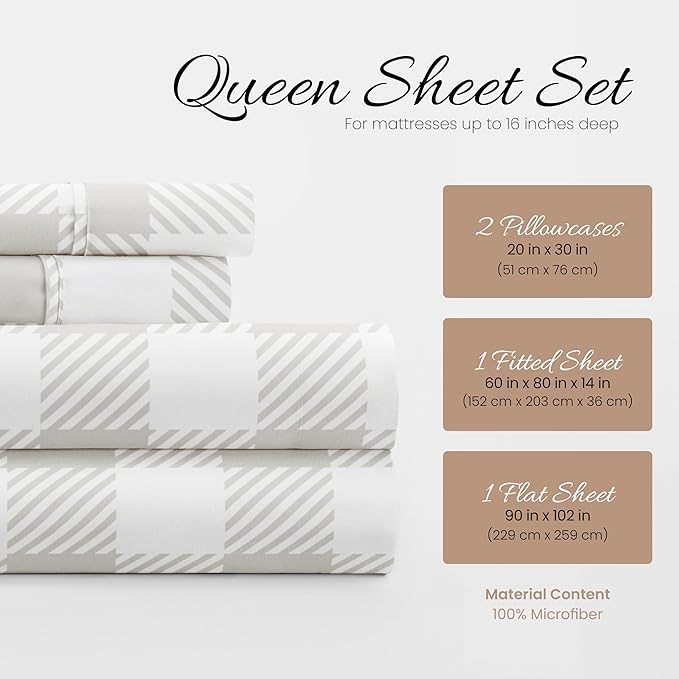 Linen Market 4 Piece Queen Bedding Sheet Set (Light Gray Plaid) - Sleep Better Than Ever with These Ultra-Soft & Cooling Bed Sheets for Your Queen Size Bed - Deep Pocket Fits 16" Mattress