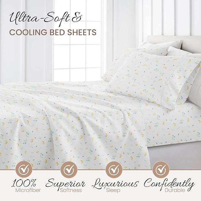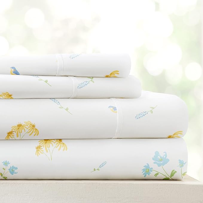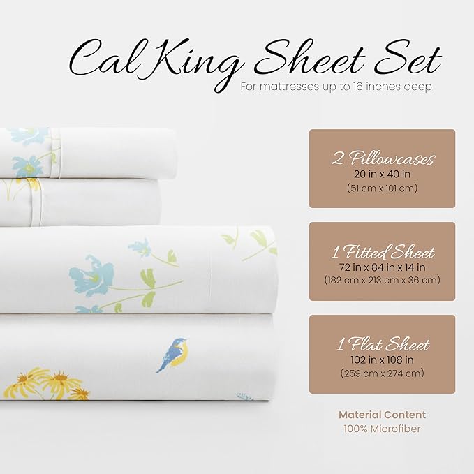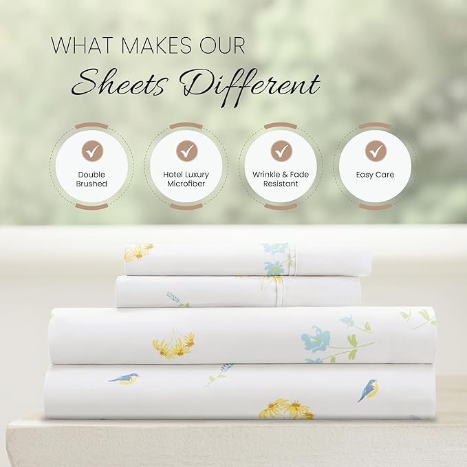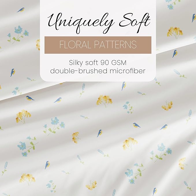 • BEAUTIFUL BED SHEETS: Our unique Bluebirds print is sure to add a touch of elegance and brighten up your bedroom. Check all 20 of our popular color options in all 5 size options to find the perfect match for every bedroom in your home.