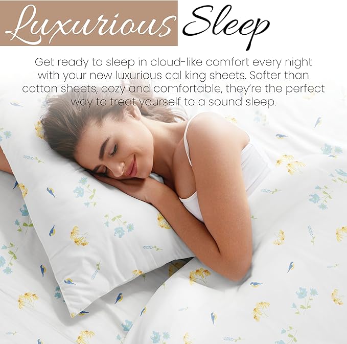 • LUXURIOUS SLEEP: Get ready to sleep in cloud-like comfort every night with your new luxurious california king sheets. Softer than cotton sheets, cozy and comfortable, they're the perfect way to treat yourself to a sound sleep.